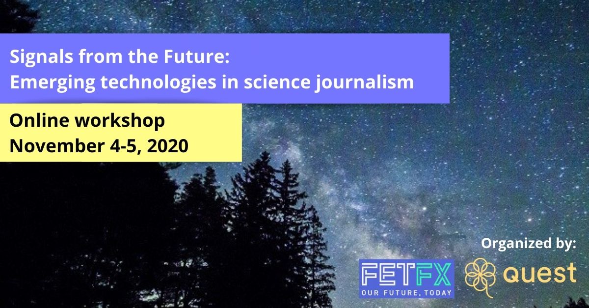 FETFX, in collaboration with QUEST project – Quality and Effectiveness in Science and Technology communication – is organizing an online workshop on Emerging technologies in science journalism that will take place online on November 4-5.