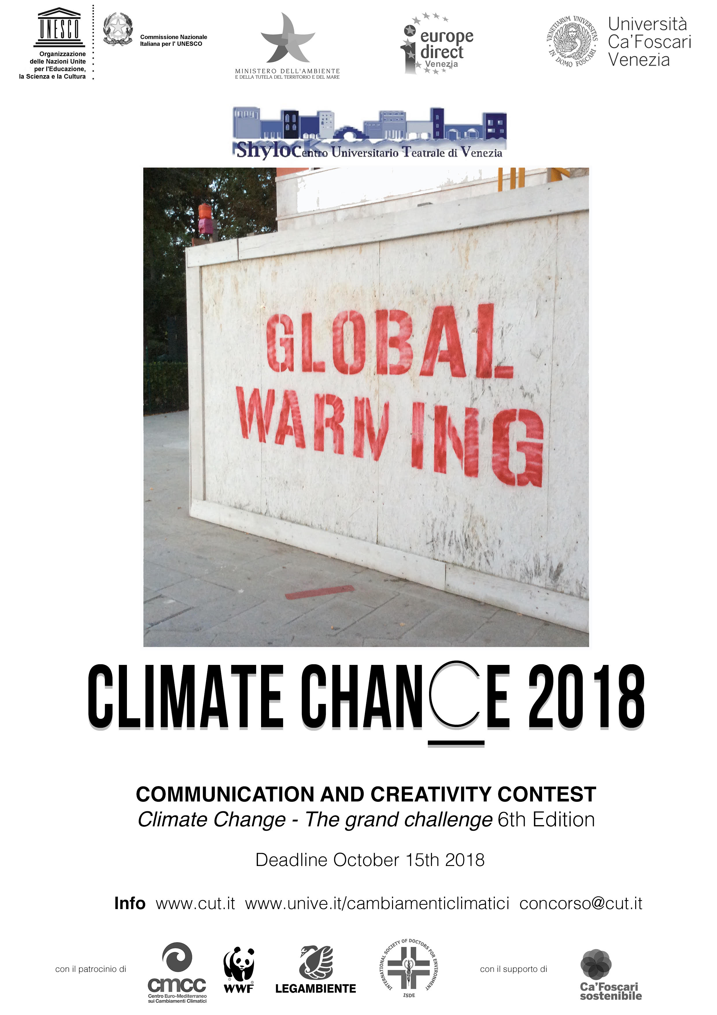 Shylock University Theater Center of Venice, announces the international contest of communication and creativity “CLIMATE CHANGE – The grand challenge” 2018 – Climate CHANCE.