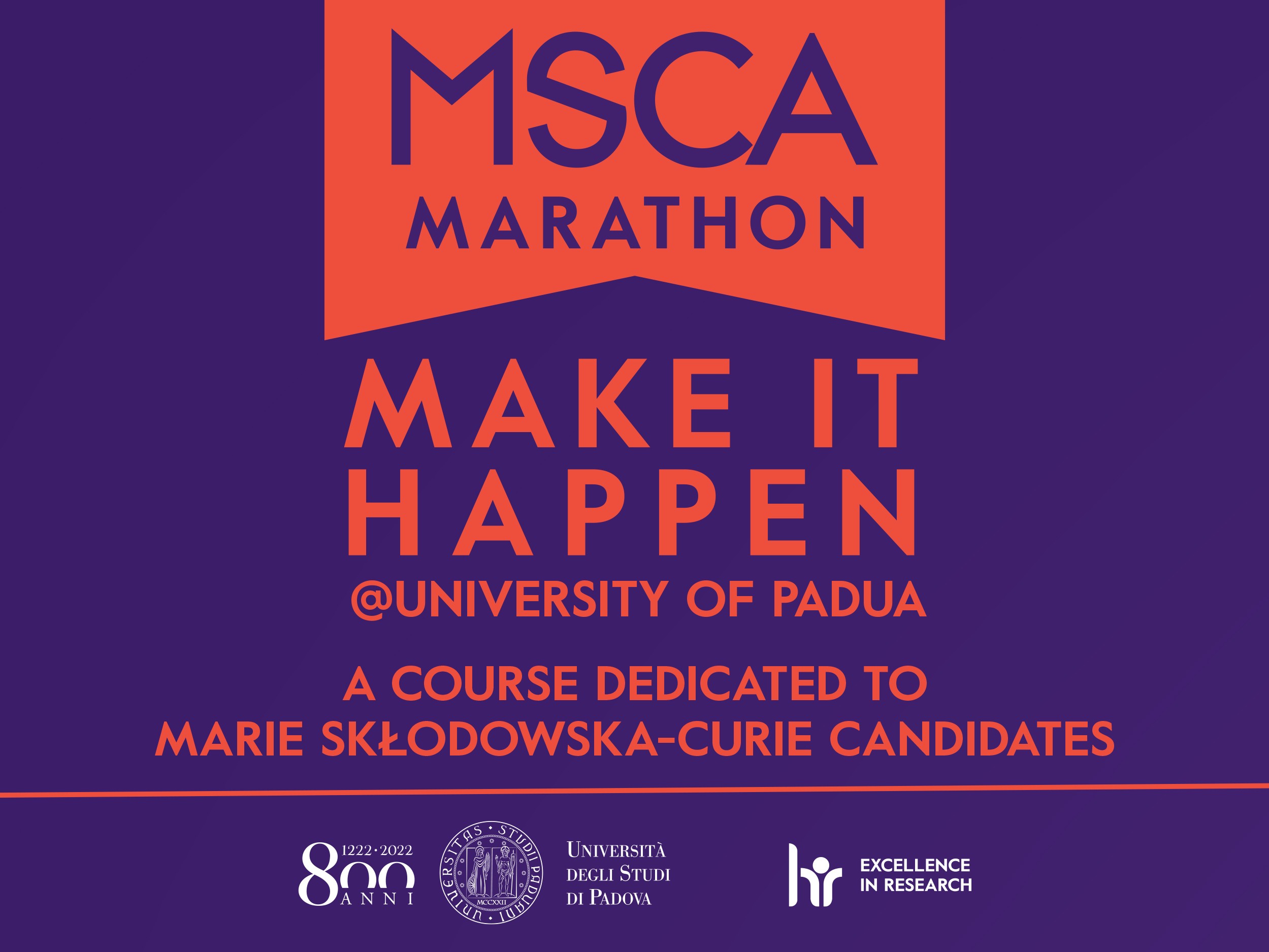 The Covid-19 crisis will not prevent the initiative from taking place and the University of Padua will provide the course fully online, in May 2020. The MSCA MaRaThoN offers the possibility to top researchers, willing to submit a Horizon 2020 Marie Sklodowska-Curie Individual Fellowship with the University of Padua as Host Institution, to receive training in writing a successful proposal for the next Individual Fellowships (IF) Call, which opens on April 8 and closes on September 9, 2020.