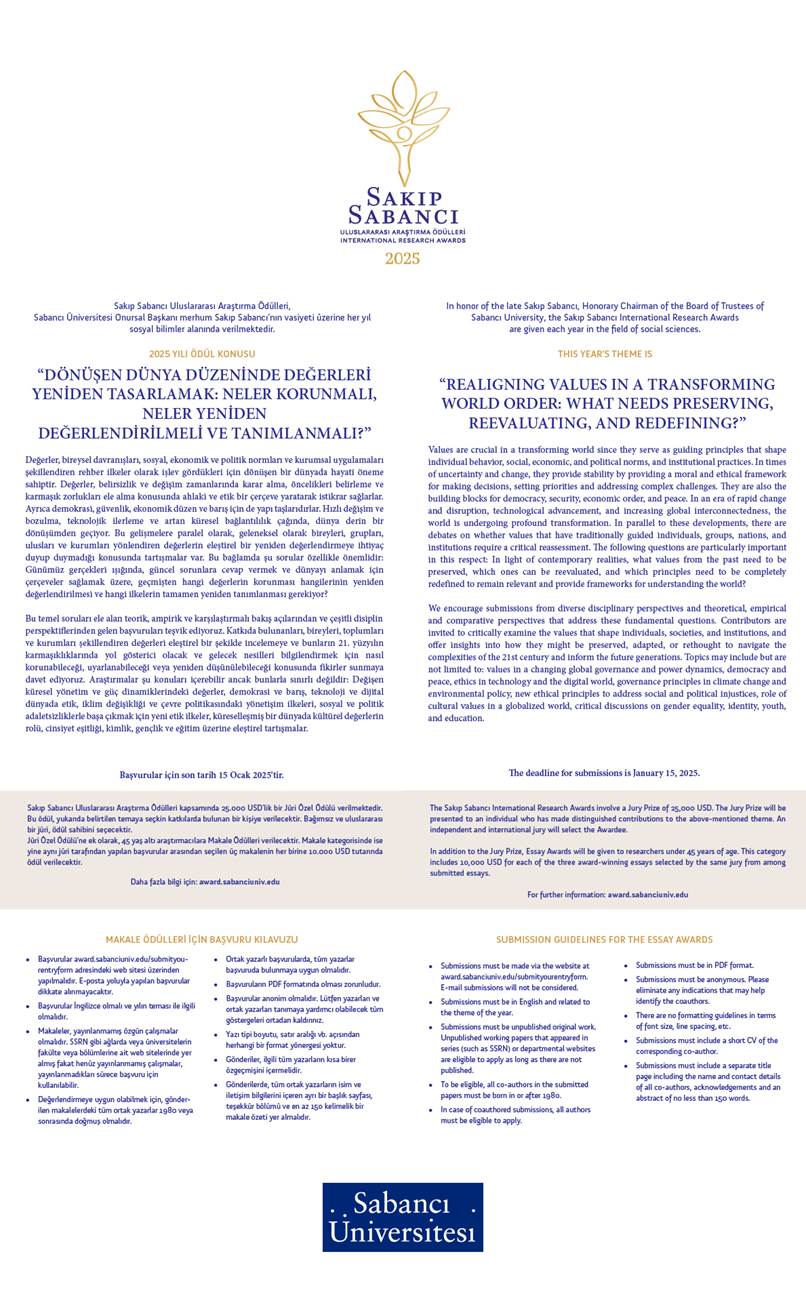 We are glad to announce that the Sakıp Sabancı International Research Awards 2025 is now open for submissions.