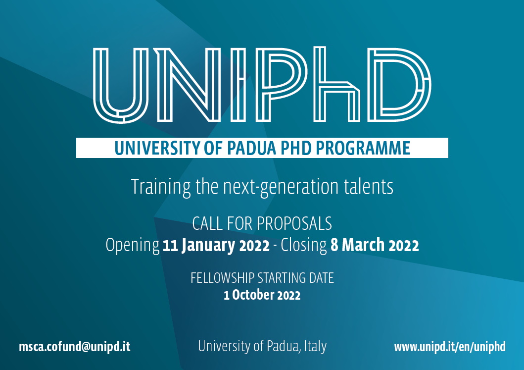 We are pleased to inform you that the University of Padua (Italy) has published the global call for applications "UNIPhD - Eight century legacy of multidisciplinary research and training for the next-generation talents” (closing date: 8 March 2022).